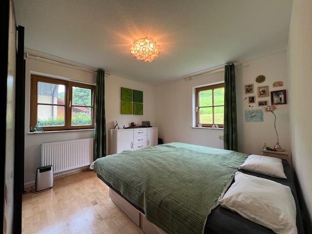 Exklusiv wohnen in erhöhter, ruhiger und sonniger Lage mit schönem Blick zu den Bergen, das bietet die gepflegte Whg. mit gemütlicher Südterrasse und kl. Garten in dem hübschen 6-Fam.-Haus. Die gut eingeteilte Whg. hat Flur, Abstellraum, Küche mit EBK u. Essbereich daneben ist das Wohnzi. mit Terrase und Freisitz, 2Schlafzi., neues Bad mit Fenster und gr. Dusche, Warmlicht und Waschbecken, + sep. WC. Ein besonderes Flair vermitteln die gr. Sprossenfenster, zum Schutz sind Aussenrollos eingebaut. Zur Wohnung gehört ein gr. Kellerraum und ein bequemer TG-Platz. Es wurde hochwertiger Fliesen- u. Parkettboden verlegt. Bei Selbstnutzung sollte die Whg. der 1.Wohnsitz sein. Ein Gem.-Wasch-/Trockenraum steht zur Verfügung. Die Whg. wurde bisher selbst genutzt und wird frei.